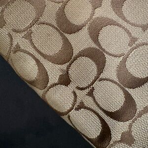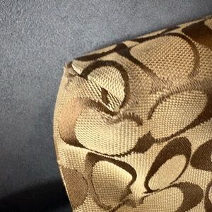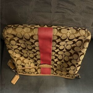 Coach Tan/Brown Crossbody Bag with Pink Center Stripe
