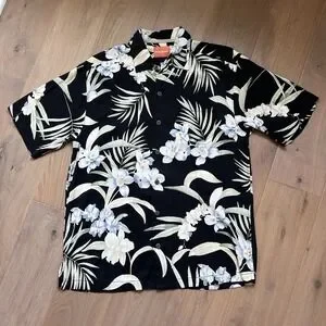 Tommy Bahama Men's 100% Silk Short Sleeve Camp Shirt Black Floral Medium