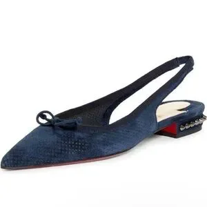 Christian Louboutin HALL SLING Spike Studded Heel Suede Flat Sandals 37.5
