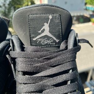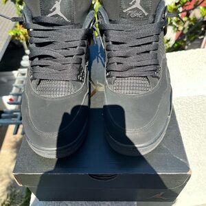 Classic Air Jordan 4 silhouette in all black. Sleek nubuck upper with tonal detailing. Iconic Jumpman logo on the tongue. Clean, versatile look for everyday wear.