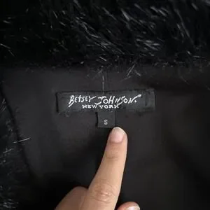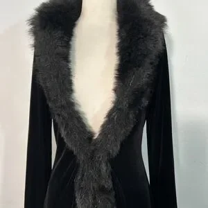 Betsey Johnson Penny Lane Coat Womens S Black Velvet Faux Fur Trim Y2K Glam