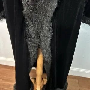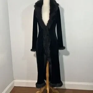 This Betsey Johnson vintage long coat is an iconic Penny Lane-inspired statement piece, crafted from plush black velvet with luxurious faux fur trim along the collar and cuffs. The full-length silhouette channels Y2K glam meets 70s bohemian drama, making it a must-have for collectors, stylists, and anyone obsessed with Mob Wife or Whimsigoth fashion.