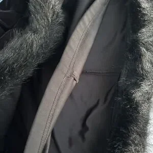 Features: Long full-length cut · Button front · Plush faux fur collar and cuffs · Lined interior