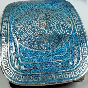 Taxco Signed Turquoise Stone Chip Vintage Belt Buckle