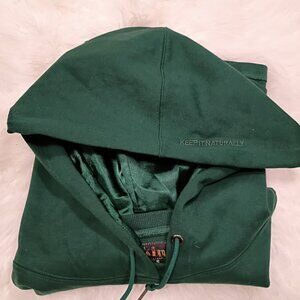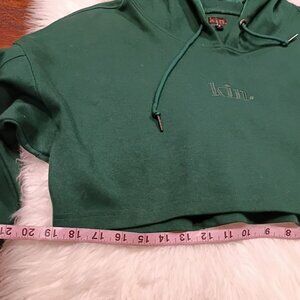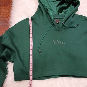 Kin Cropped Green Cotton S Hoodie With Satin-Lined Hood Drawstring