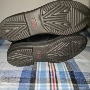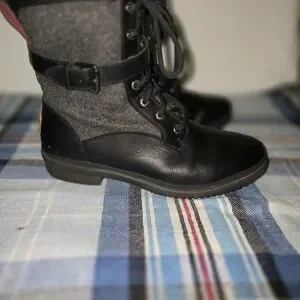 UGG lace-up women's ankle boots. Wool-paneled shaft with leather overlays. Functional buckle and pull tab. Cushioned insole for comfort. Durable rubber outsole for traction.