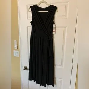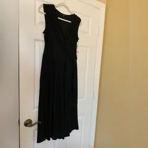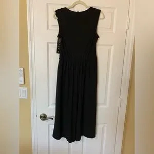 NWT Trina B Black V-Neck Sleeveless Wrap Wide-Leg Jumpsuit Size L Minimalist