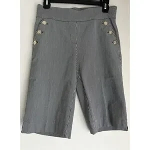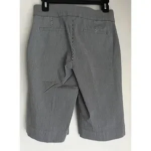 Liz Claiborne Bermuda Shorts Womens Small Black White Stripe Gold Buttons