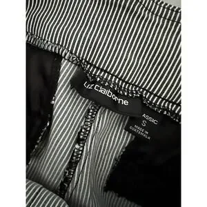 Elevate your summer wardrobe with these chic Liz Claiborne Bermuda shorts. Featuring classic black and white stripes and adorned with gold buttons, these shorts are perfect for any occasion. Made for women in size small, these shorts are sure to fit you like a glove. The colorful theme adds a fun and playful touch to these versatile shorts that can be styled in a variety of ways. Ideal for any summer outing, these shorts are a must-have for any fashion-forward woman.