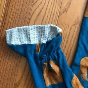 Cute and cozy one piece fleece pj with footies. Normal wear on the footies, other than that its great shape.