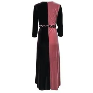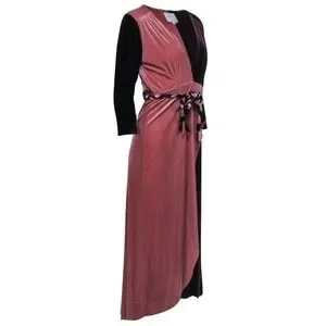 MISA Los Angeles - Burgundy & Blush Velvet Wrap Dress W/ Braided Tie