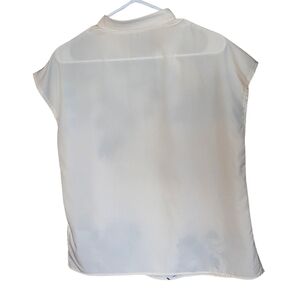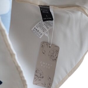 NEW Emery Rose Ivory Cap-Sleeve Floral Popover Blouse with Navy Print Size L