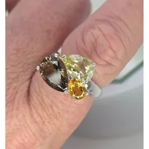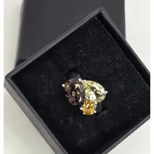 Michelle Albala 925 Sterling Silver Smoky Quartz Citrine Peridot Ring Sz 7.25