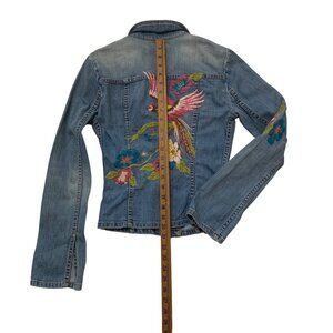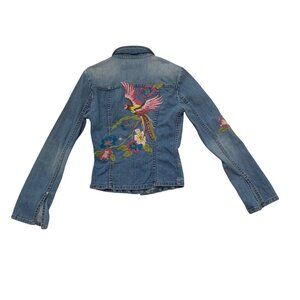 VTG Peacock Embroider Jean Jacket Extra Long Sleeves Y2K Fairygrunge dopamine