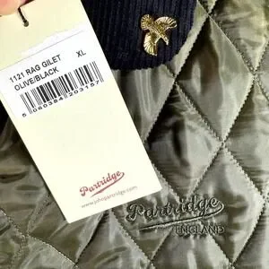 John Partridge Rag Gilet Quilted Vest Men's XL Olive Black Corduroy Button Front