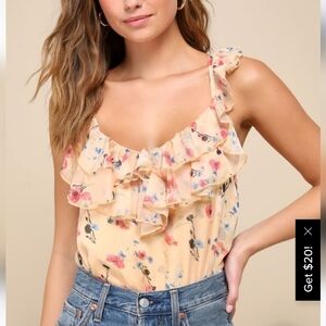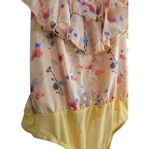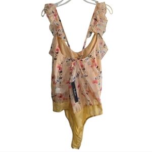 NWT Lulu's Perfect Chance Yellow Floral Print Chiffon Ruffled Bodysuit Medium