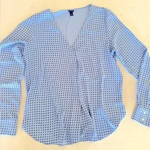 Ann Taylor Light Blue Geometric V-Neck Blouse