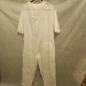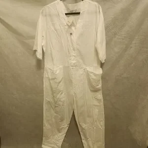 This all-cotton jumpsuit features breezy details like wide sleeves, chunky patch pockets and waist ties for a utilitarian-inspired vibe. 53" length; 25" inseam; 21" V-neck Short sleeves 100% cotton Machine wash, lay flat