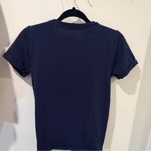 Blue tie-front J Crew short sleeve shirt with rolled sleeve hems.
