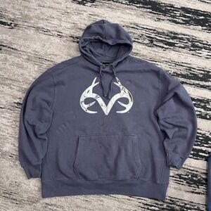 Realtree Hoodie Sweatshirt Men SizeXX Large Gray Graphic Logo Pullover Cotton