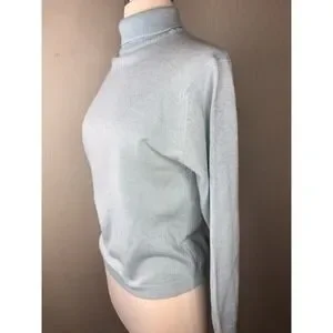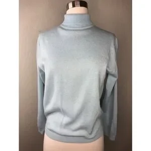 VTG BROADWAY SUBURBANITE SPORTSWEAR Blue Turtleneck Sweater Silver Metallic