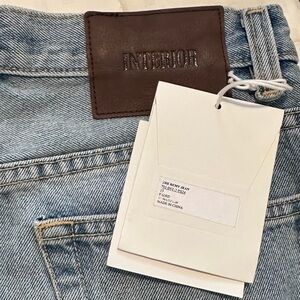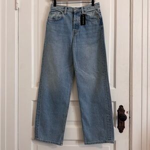 INTERIOR NYC The Remy High Rise Straight Wide Leg Jeans Light Wash Blue Size 25