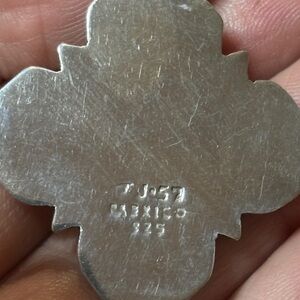 Elegant sterling silver pendant featuring a striking red coral centerpiece. Perfect for adding a touch of sophistication to any outfit. Stamped TJ 57. I am not sure who the artist or shop is. 80's - 90's. Light wear on the back. Total weight is 12.80 grams