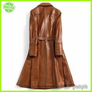 [ORIGINAL_TITLE: Women's Leather Trench Coat Military Style Real Sheepskin Long Coat]