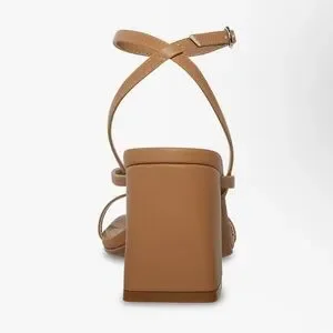 These Marvel tan heels feature a sophisticated design with elegant thin straps and a modern block heel. The smooth, matte finish and ankle strap with buckle closure add a touch of contemporary style, making them perfect for both casual and dressier occasions.