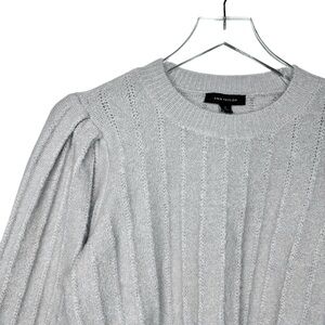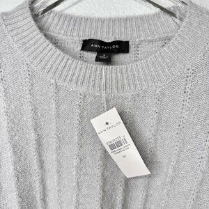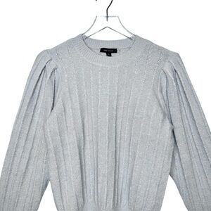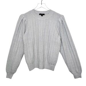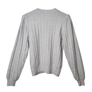 NWT Ann Taylor Soft Spun Cool Gray Balloon Sleeve Women’s Pointelle Sweater Sz M