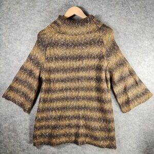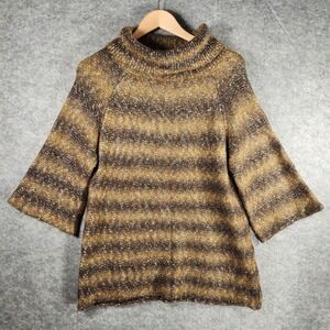 Adrienne Vittadini Studio Womens Sweater Size L Turleneck Striped Sparkle Knit