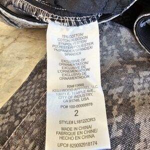 Cute & sassy snake print gray denim with zipper accents at the pockets. Like new condition!