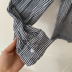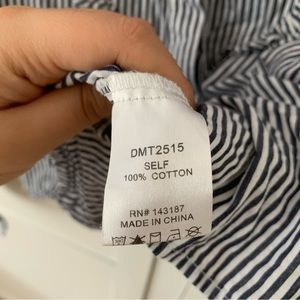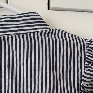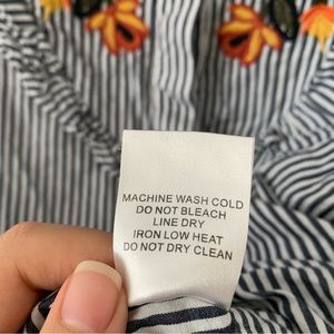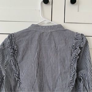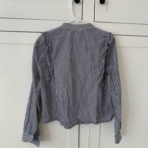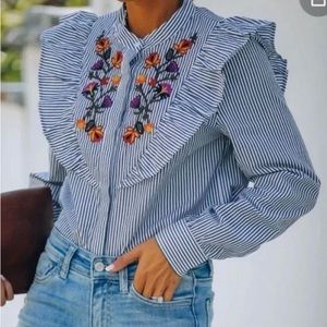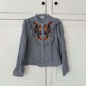 Dance & Marvel Blue Stripe Floral Embroidered Ruffle Long Sleeve Button Top L
