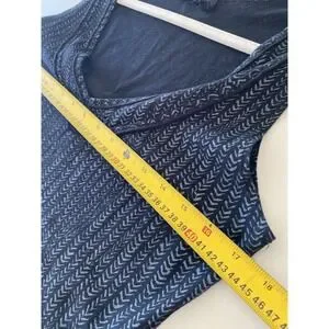 The Fresh Produce Women's Small Black Chevron Sleeveless Dress is a stylish and comfortable option for spring and summer. Made of cotton knit fabric, this knee-length dress features a V-neck and pullover closure for easy wear. The geometric black chevron pattern adds a fun and trendy touch, while the inclusion of pockets adds practicality for everyday wear. Perfect for casual outings or travel, this A-line sundress in a bohemian coastal style is a must-have for any woman's wardrobe.