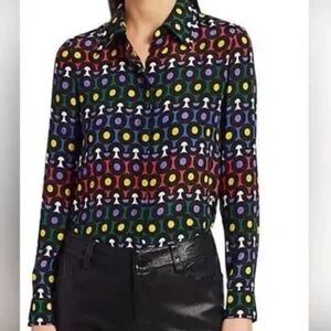 Alice + Olivia Willa Color Placket Silk Blouse Rainbow Dot Women's Small