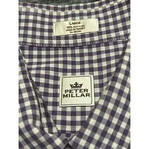 Peter Millar Mens L Purple White Plaid Long Sleeve Button Down Sport Shirt