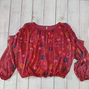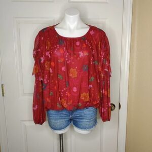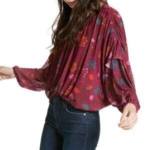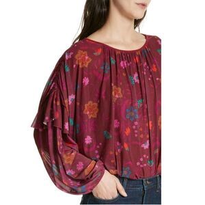 Free People Wildflower Honey Floral Stretch Mesh Blouson Ruffle Top S