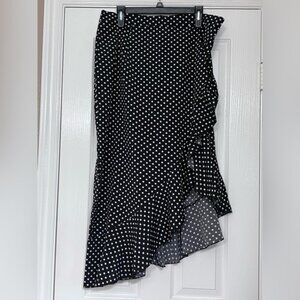 Elevate your evening look with this chic black and white midi skirt from Nasty Gal, featuring an elegant wrap style and asymmetrical ruffled hem. Perfect for cocktail parties or a night out, this skirt combines classic colors with a modern twist for a standout piece in your wardrobe.