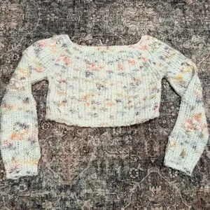 $148 Free People Sunset Cloud Pullover Sweater XS Cropped Confetti Knit