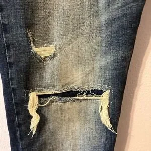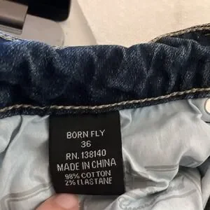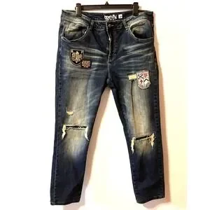 Elevate your denim game with these Born Fly Men's 36 ANYTOWN USA Distressed Denim Jeans. The patchwork embroidered design adds a unique touch to the classic fit, while the distressed and colorful accents give off a biker and art-inspired vibe. The cotton blend material is machine washable and features a light fabric wash, making it a durable and easy-to-care-for addition to your wardrobe. These jeans are equipped with a zip and button closure, belt loops, and a 5-pocket design, providing both style and functionality. The mid-rise style and straight leg opening make it a versatile choice for any occasion, while the 31-inch inseam and classic fit ensure a comfortable and flattering look. Made in China, these jeans are perfect for men who want to stand out with their fashion choices.