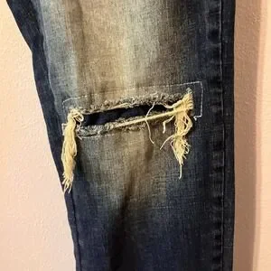 Born Fly Men's 36 ANYTOWN USA Y2K Grunge Distressed Denim Jeans Patchwork Zip