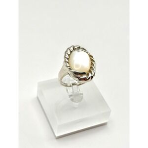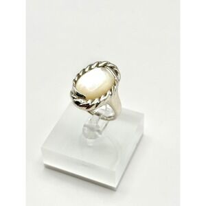 Mother of Pearl Sterling Silver Handmade Statement Ring Size 8.75