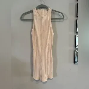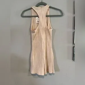 Zara S Cream Ribbed Sleeveless Jumpsuit