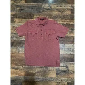 Frye‎ Mens Red Clay Short Sleeve Faded Button Front Collared Polo Shirt
