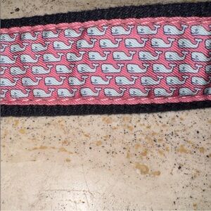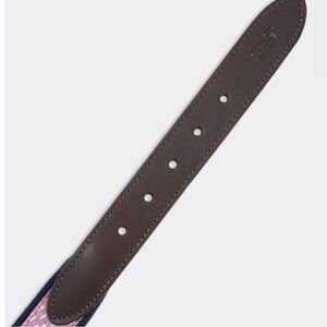 Vineyard Vines Pink Whale Webbing Belt with Brown Leather Trim