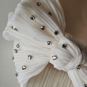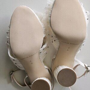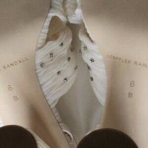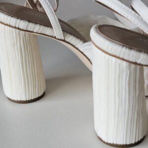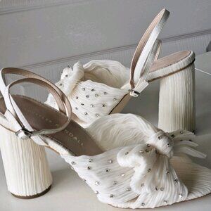 Loeffler Randall Camellia Pleated Bow Rhinestone Ivory Heels Sandals