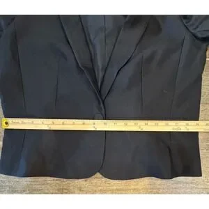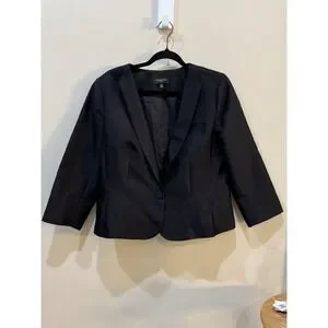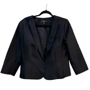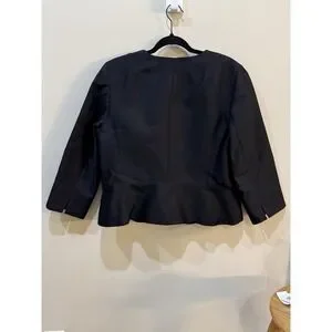 Talbots Black Silk Cotton 3/4 Sleeve Blazer Size 14 Petite Cropped Career