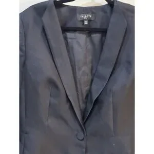 The Talbots Black Silk Cotton 3/4 Sleeve Blazer in size 14 Petite is a stylish and versatile piece perfect for a career wardrobe. Made from a luxurious blend of silk and cotton, this blazer exudes sophistication and professionalism. The cropped length and 3/4 sleeves add a modern touch, while the classic black color makes it a timeless wardrobe staple. This one-piece blazer is a must-have for any woman looking to elevate her professional attire. 2229. 010326. 6500