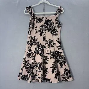 Y2K Teeze Me Tan Dress With Flocked Black Floral Pattern SZ 7 Fit & Flare, Flirty