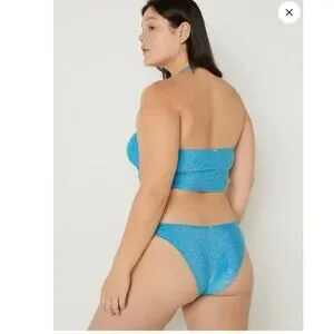 PINK 3 Piece Swim Size L Large Blue Shimmer NWOT Summer Swim Bathing Suit